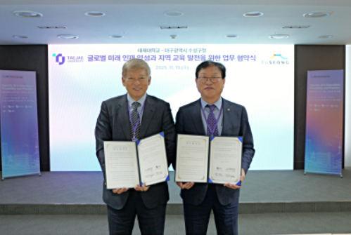 태재대학교는 11월 19일, 대구광역시 수성구와 글로벌 미래 인재 양성 및 지역 교육 발전을 위한 업무협약(MOU)을 체결했습니다. 이번 협약은 2025 태재미래교육포럼과 연계해 추진된 것으로, 지속 가능한 교육 발전을 위한 협력적 거버넌스 구축을 목표로 마련되었습니다.